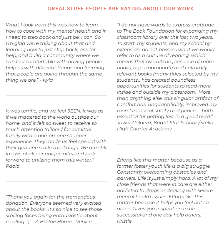 Since then, Make Good has touched the lives of countless young people through its programs: The Book Foundation, The TAY Shop, and Life Literacy Workshops. Their work has been recognized in various media outlets, highlighting their commitment to making a real difference.